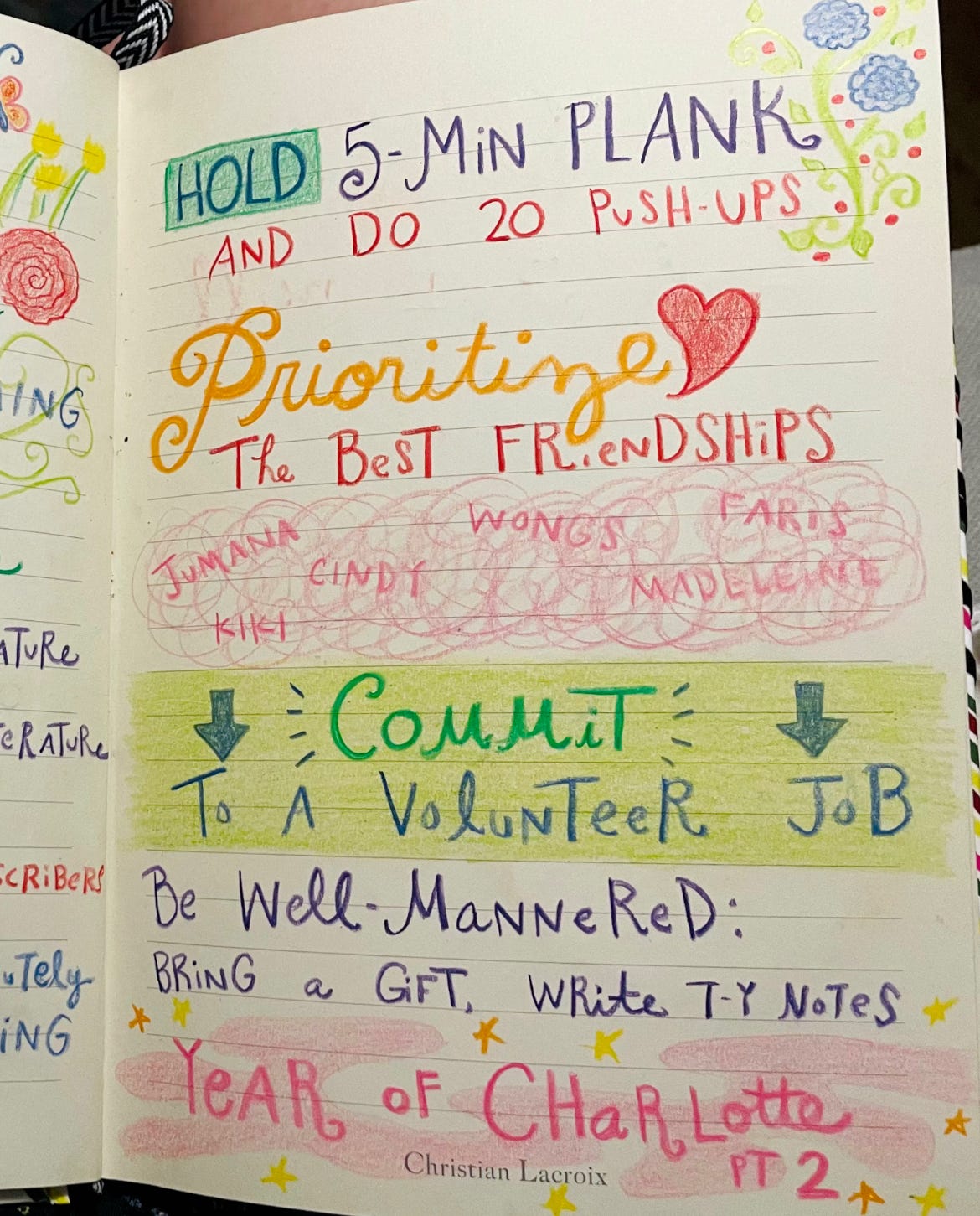 Since I have decades of experience making entire mural-wide matrixes of goals and intentions and themes and motivating visuals (somehow, this is different from a “vision board,” but I can’t tell you how…), I’ve learned what works when it comes to sticking with resolutions.